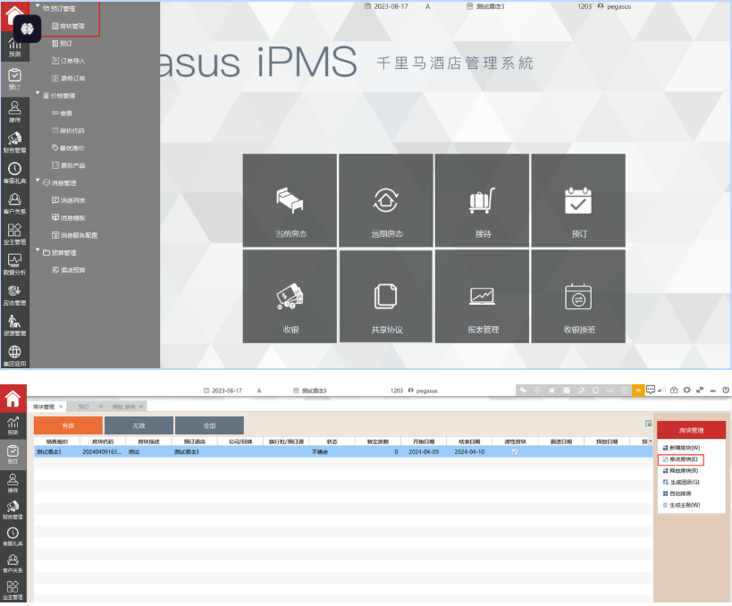 选择“预订管理>房块管理>修改房块>房块操作日志”来实现。