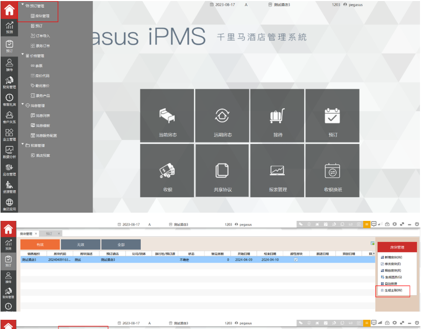 生成主账:选择“预订管理>房块管理>生成主账”或点击“修改房块>房块期间>生成主账”来实现。
