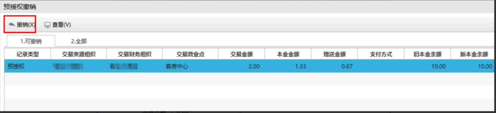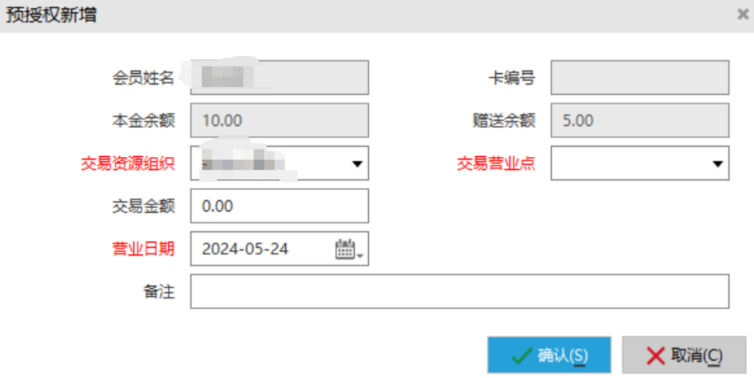 打开系统-财务管理-储值账户-找到对应的储值账户选择以后点击右侧功能区预授权新增, 红色字体必填,选择营业点、交易组织,输入预授权的交易金额。点击确定输入客人的交易密码进行预授权,交易完成后打印预授权回执单