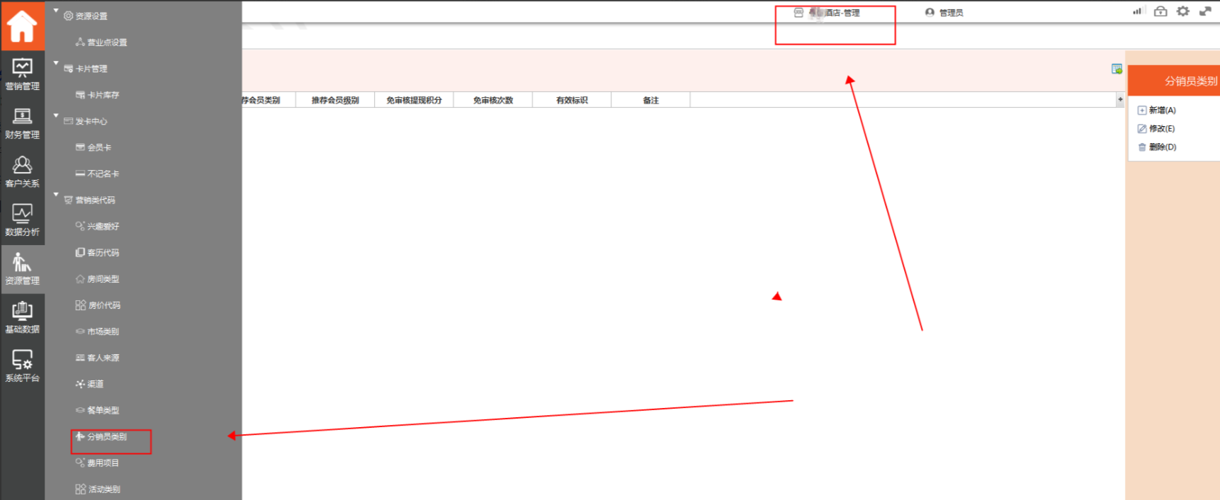 ICRM支持分享二维码来吸纳其他客人加入酒店会员体系。分享二维码的会员则可获取积分,用于酒店消费或者体现。需要在这里设置分销员类别