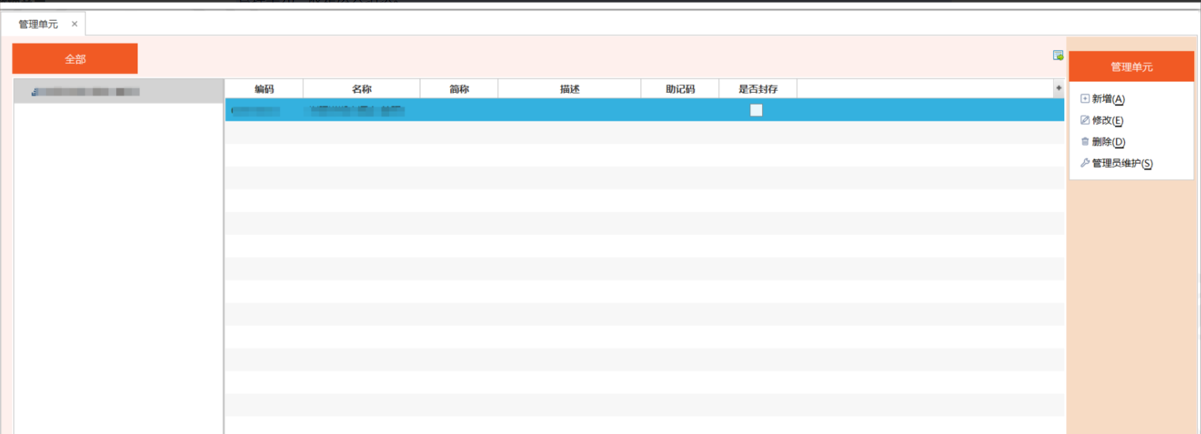 列表:用户所能看到的管理单元数据与用户登录的管理单元有关,即只能查看登录管理单元及其下级管理单元