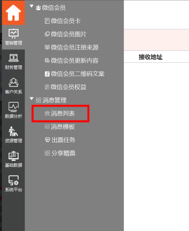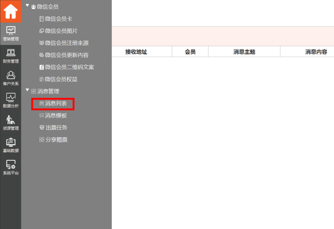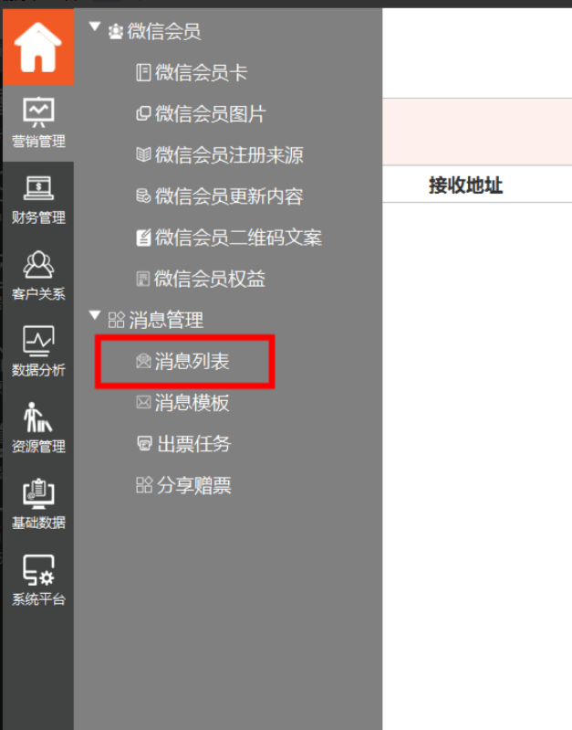 1、登陆组织单元,选择“客户关系”—“营销管理”-“消息列表”