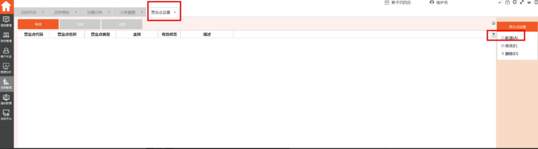 2、选择想要删除的营业点右侧“删除”功能即可删除