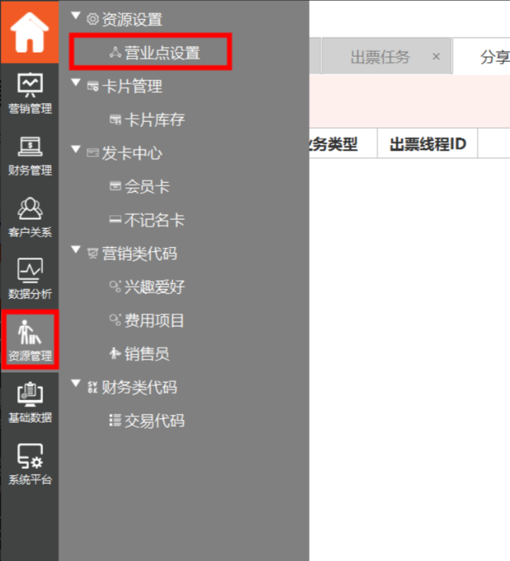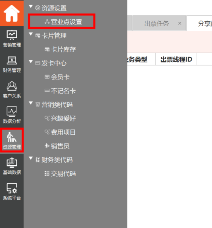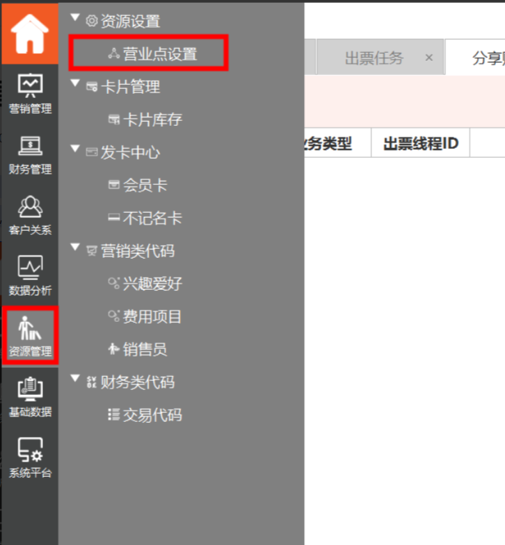 1、登陆组织单元,选择—“财源管理”-“营业点设置”