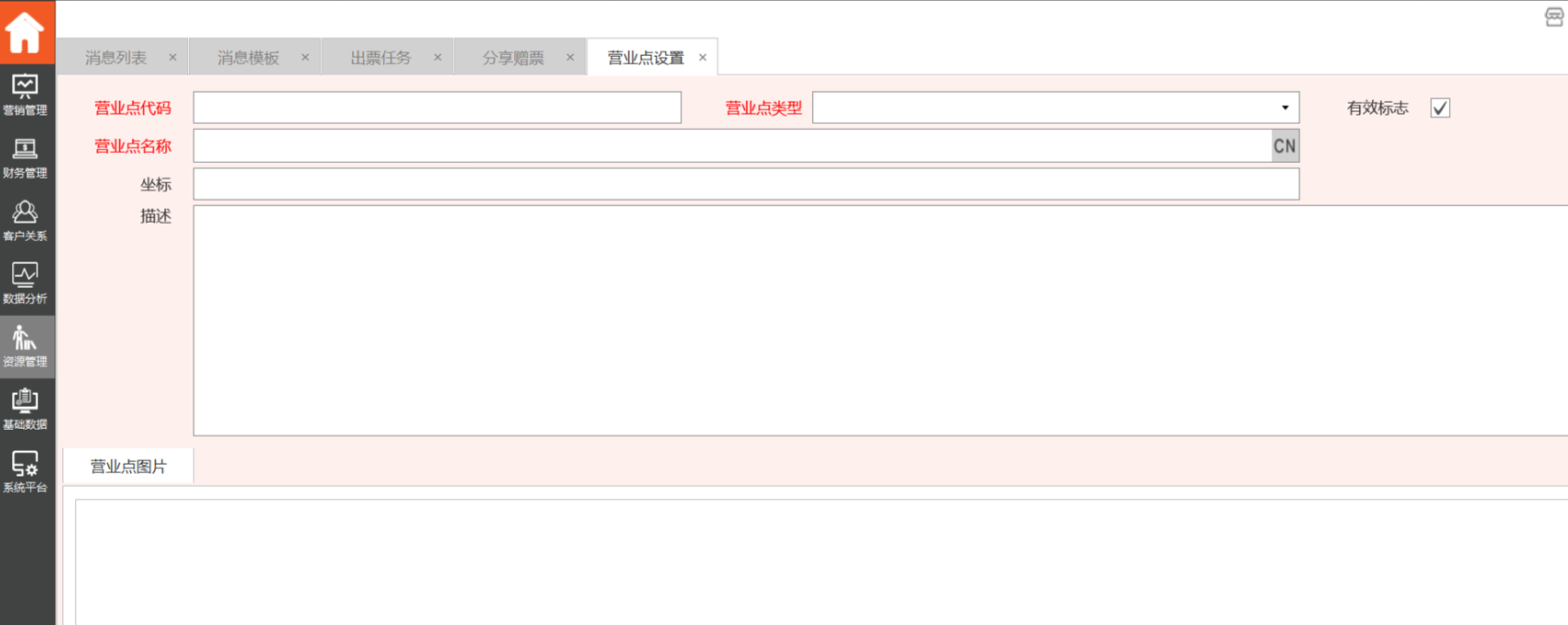 3、弹出界面中输入营业点代码、营业点名称、选择营业点类型后保存即可--注意营业点代码必须两位