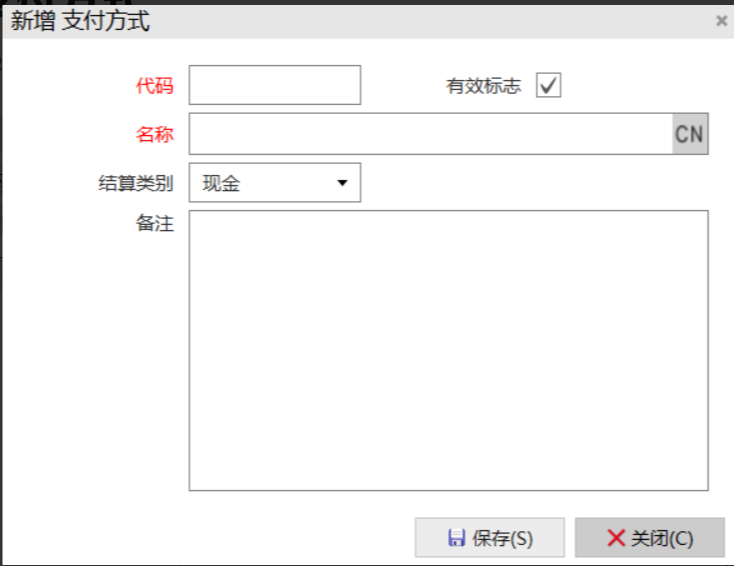支付方式被业务数据引用后,“代码”即不能修改,其他内容允许修改;