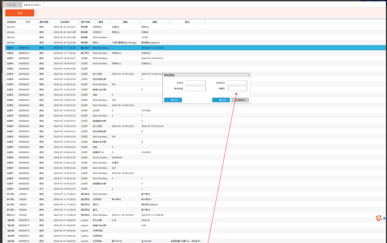 进入系统平台-系统管理-会员及卡片日志,即可查看会员操作日志