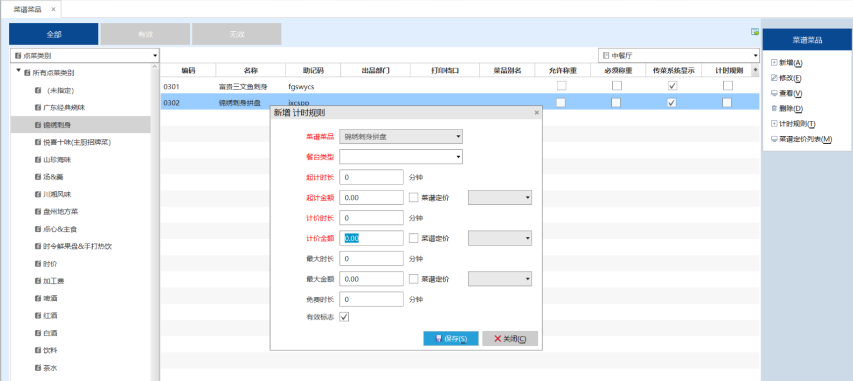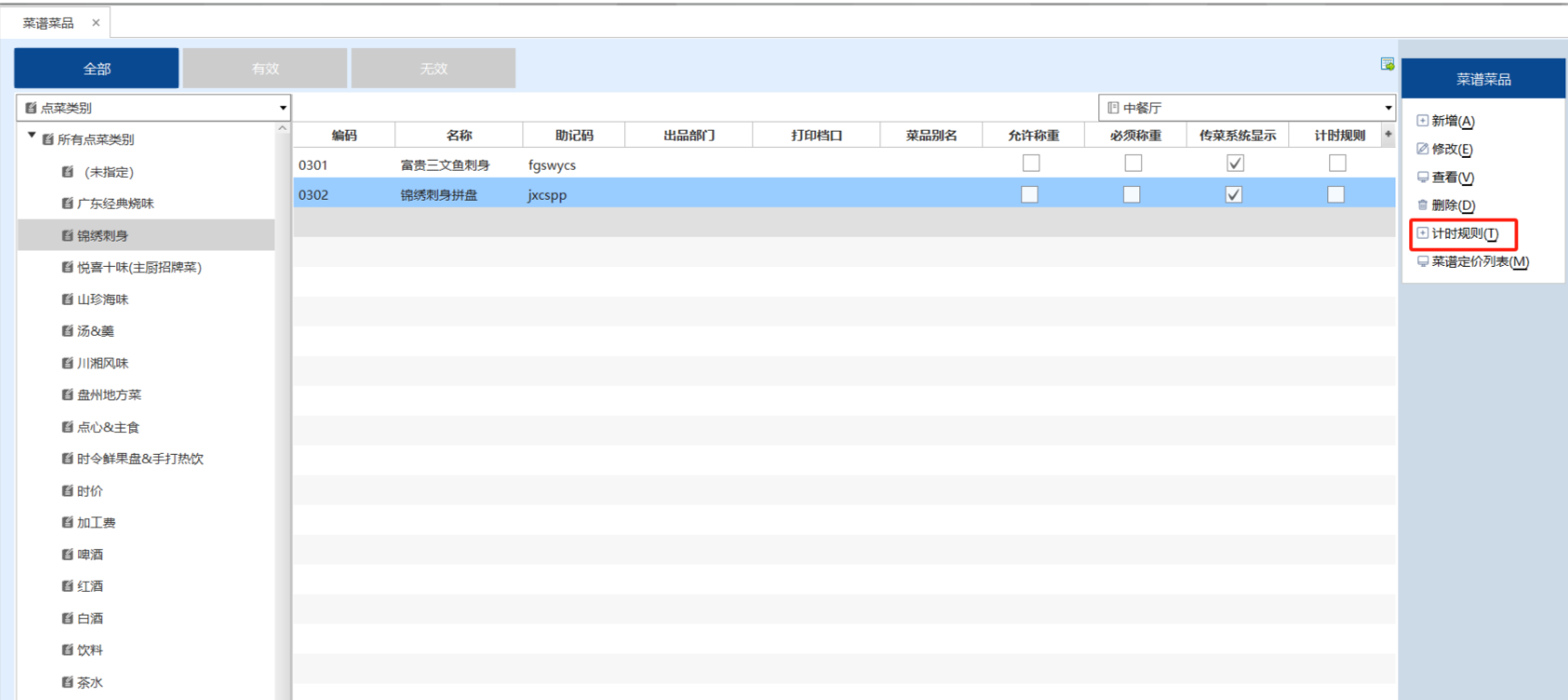 2.4.2 选择菜谱菜品,点击"计时规则"