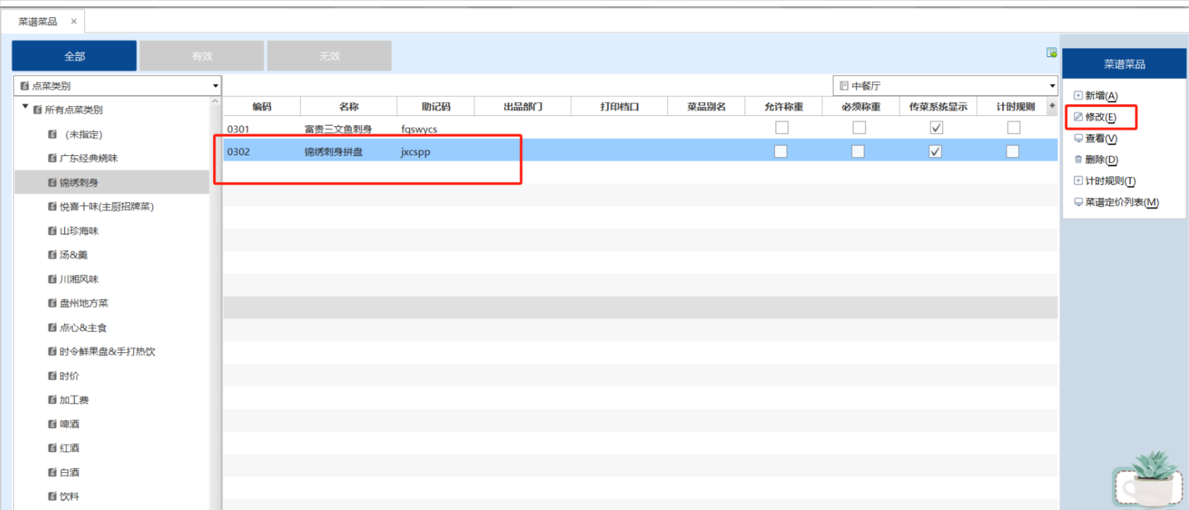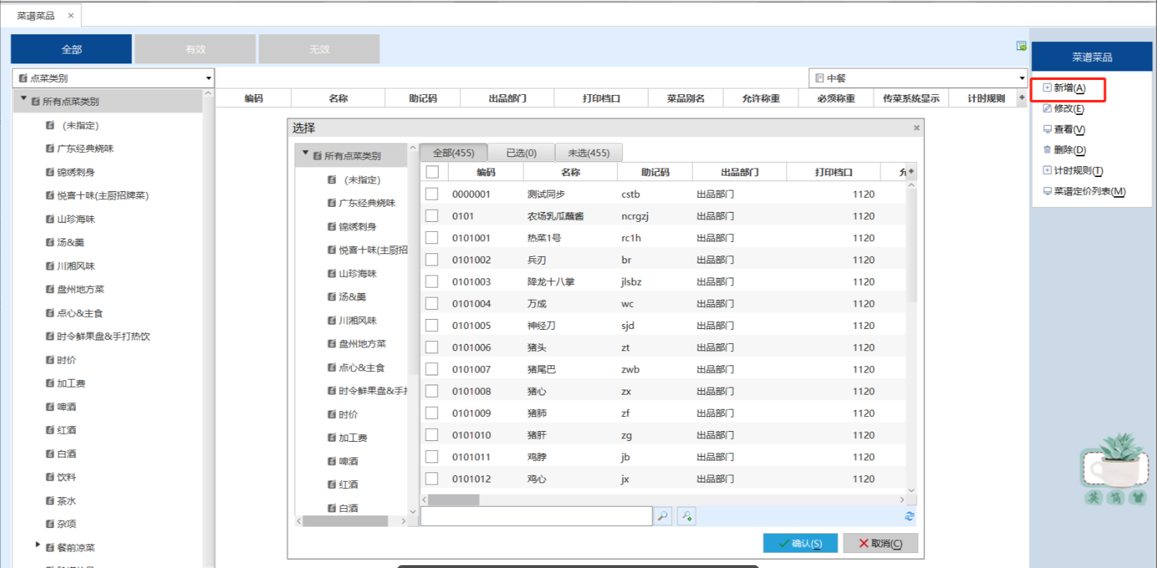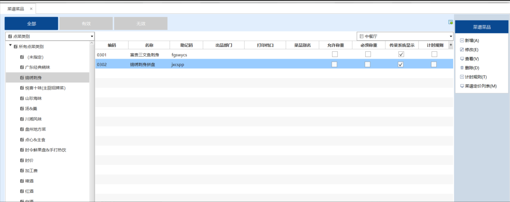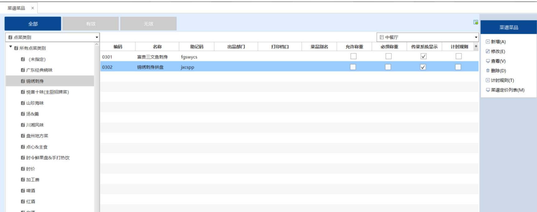 往菜谱中添加具体的菜品,并在ipos中显示要销售的菜