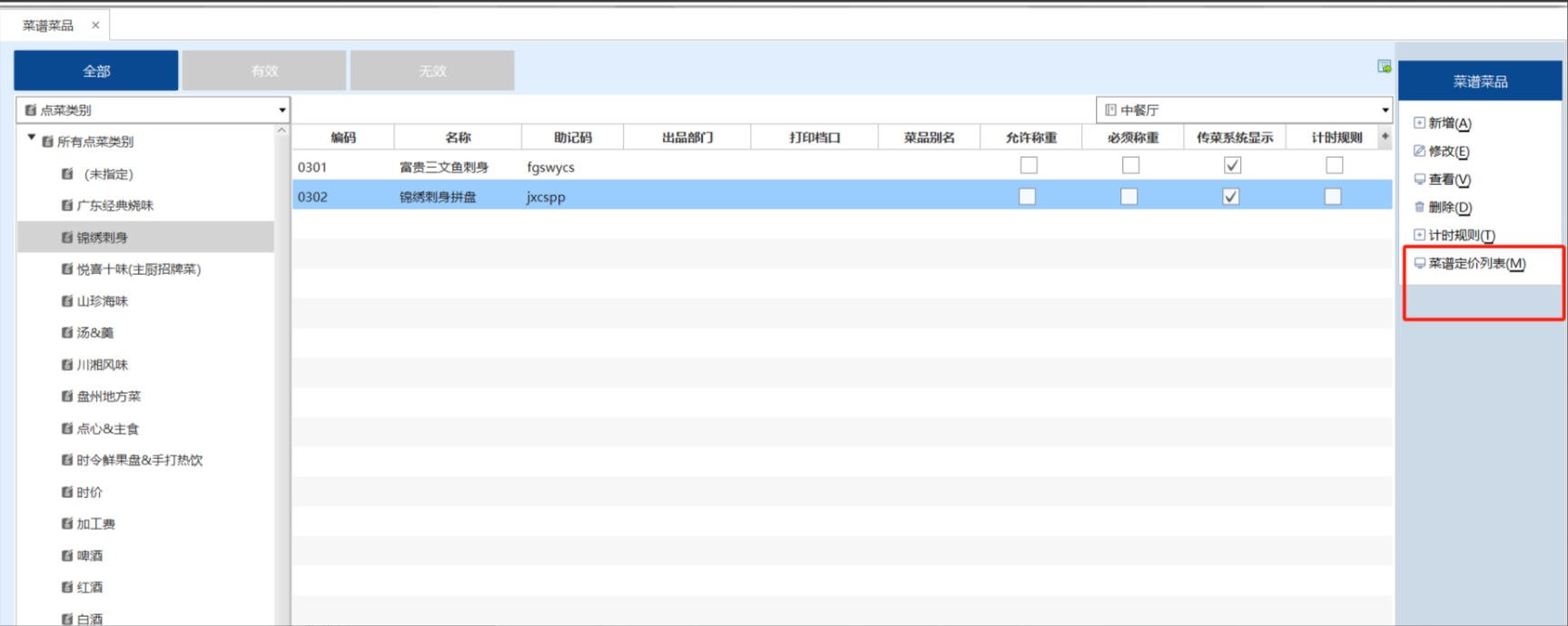 2.3.3 查看菜谱菜品的销售定价、销售属性