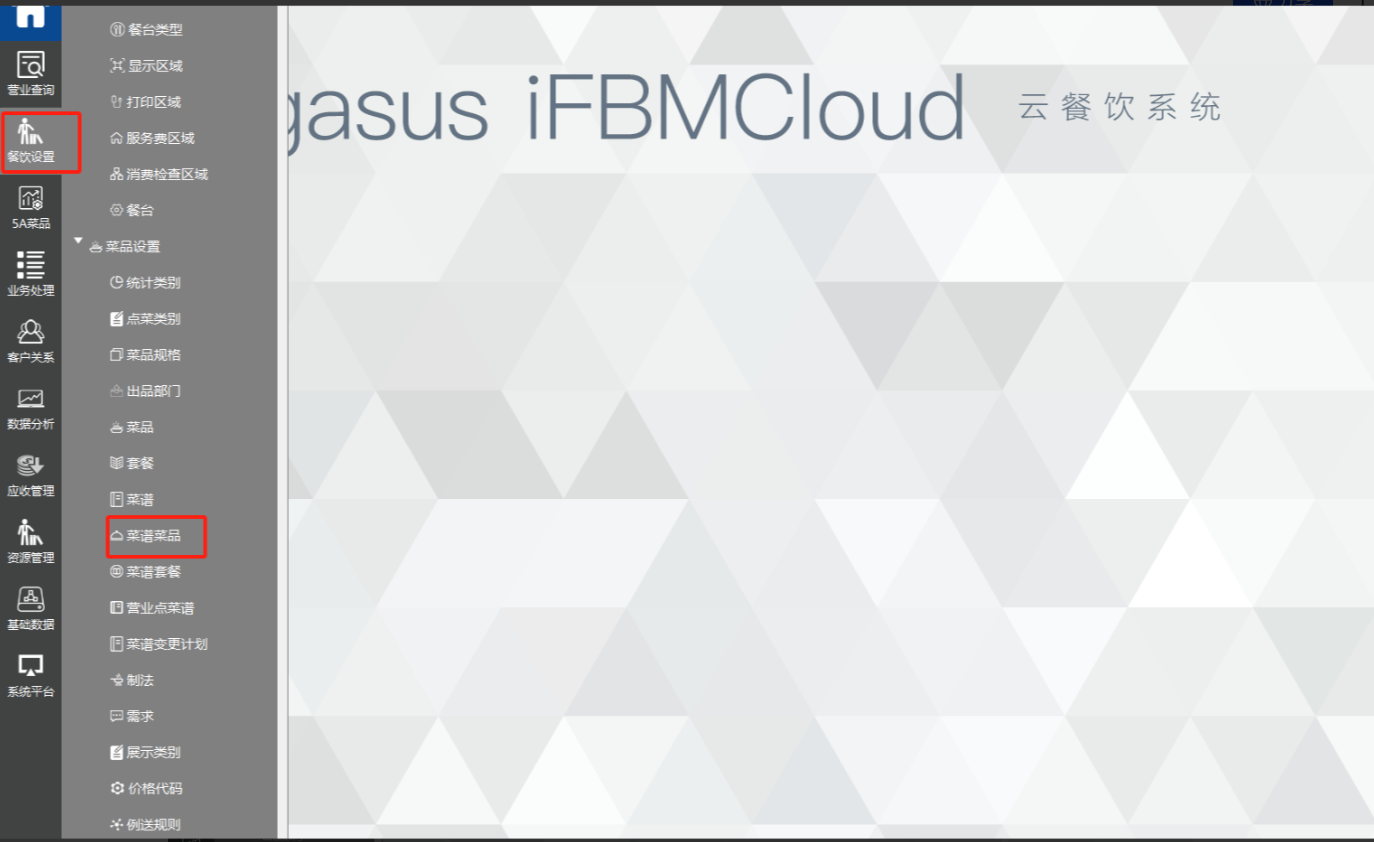 2.1.1 登录ifbmcloud组织单元,餐饮设置>菜谱菜品