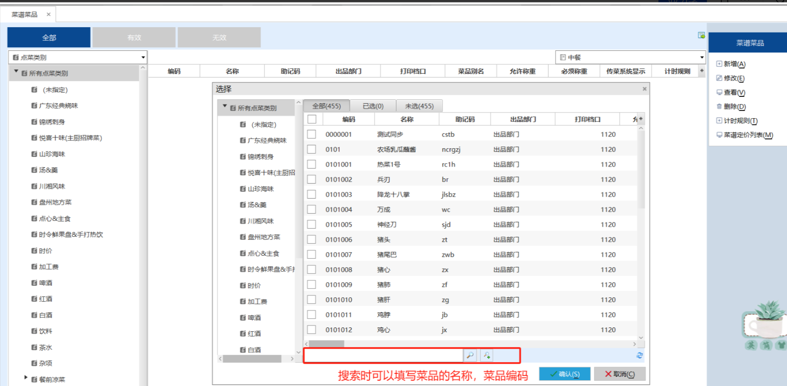 编辑单价:如果选中,在点该菜时,系统会让用户修改单价