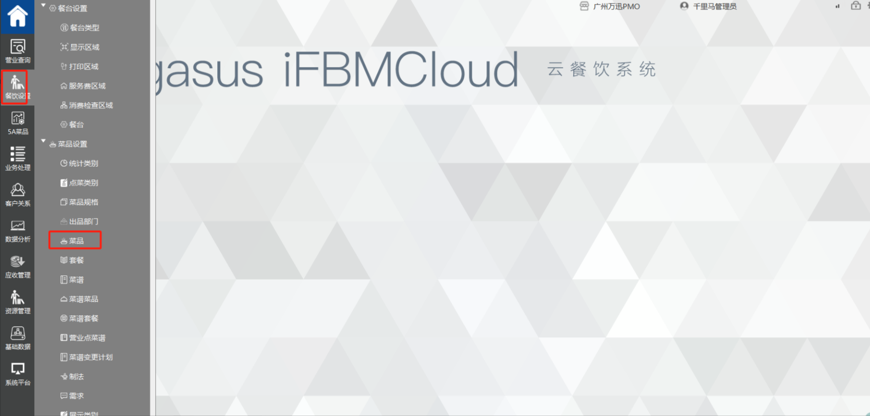 1.1 登录管理单元,餐饮设置>菜品