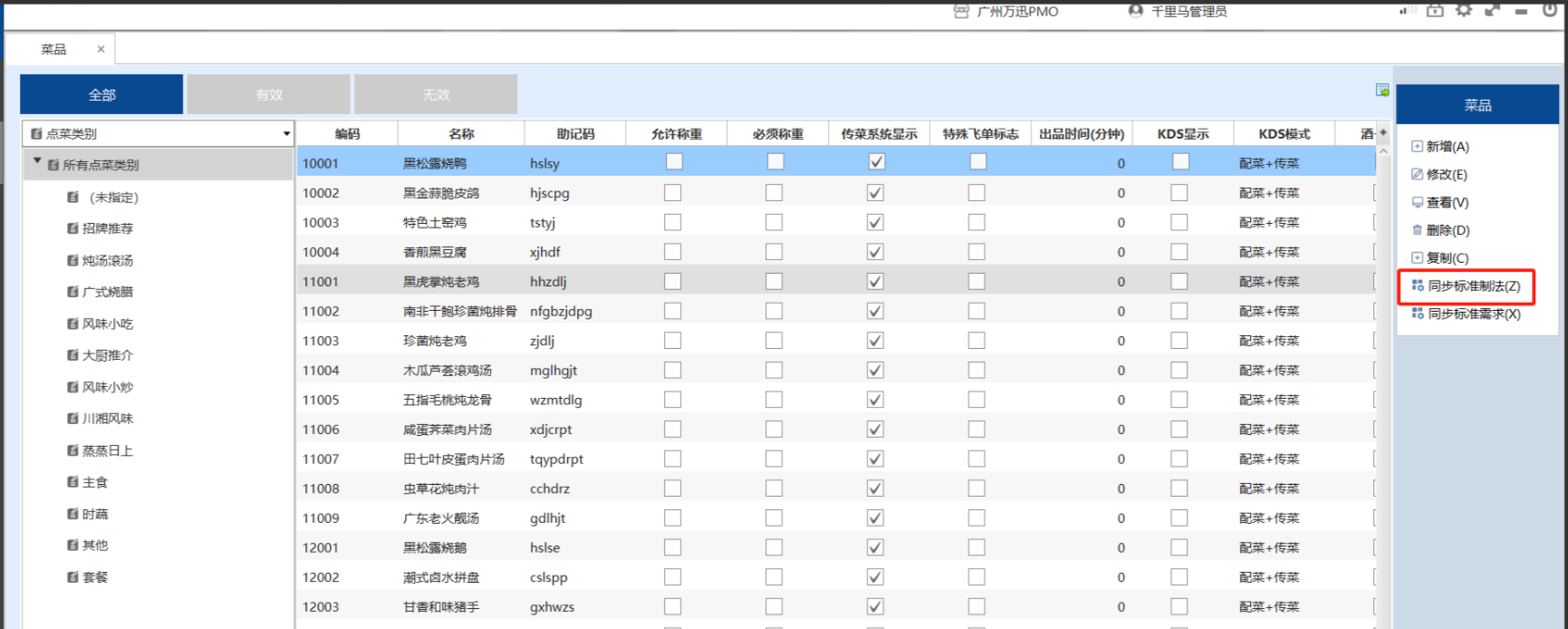 1.2 选择菜品,点击"同步标准制法"