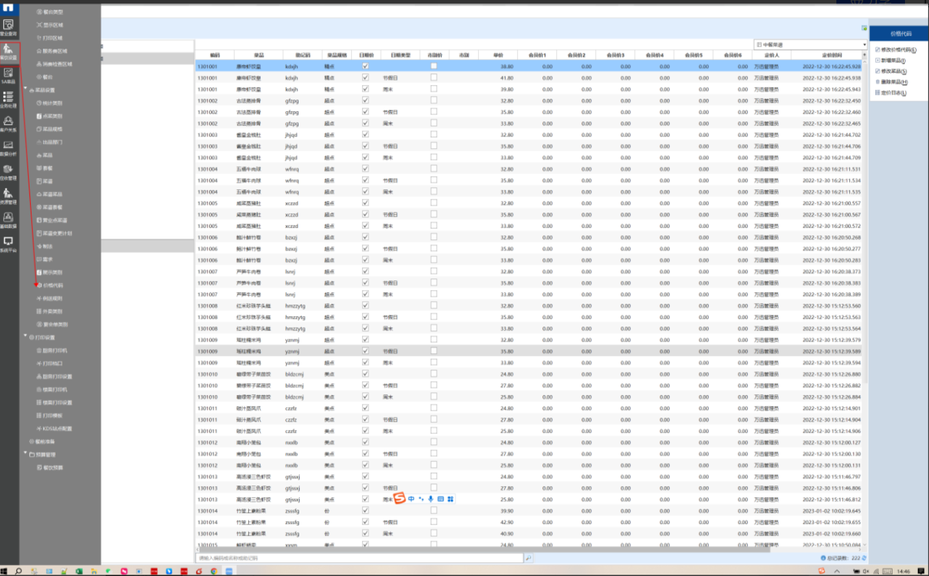 2.3修改菜品价格,如果新增后,需要修改,可以点击旁边菜品,然后点击菜品价格,进行修改