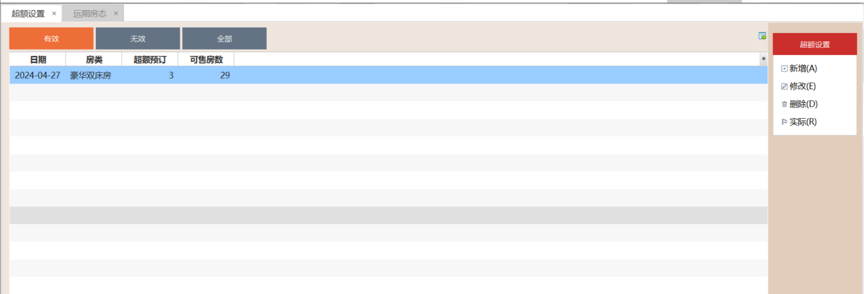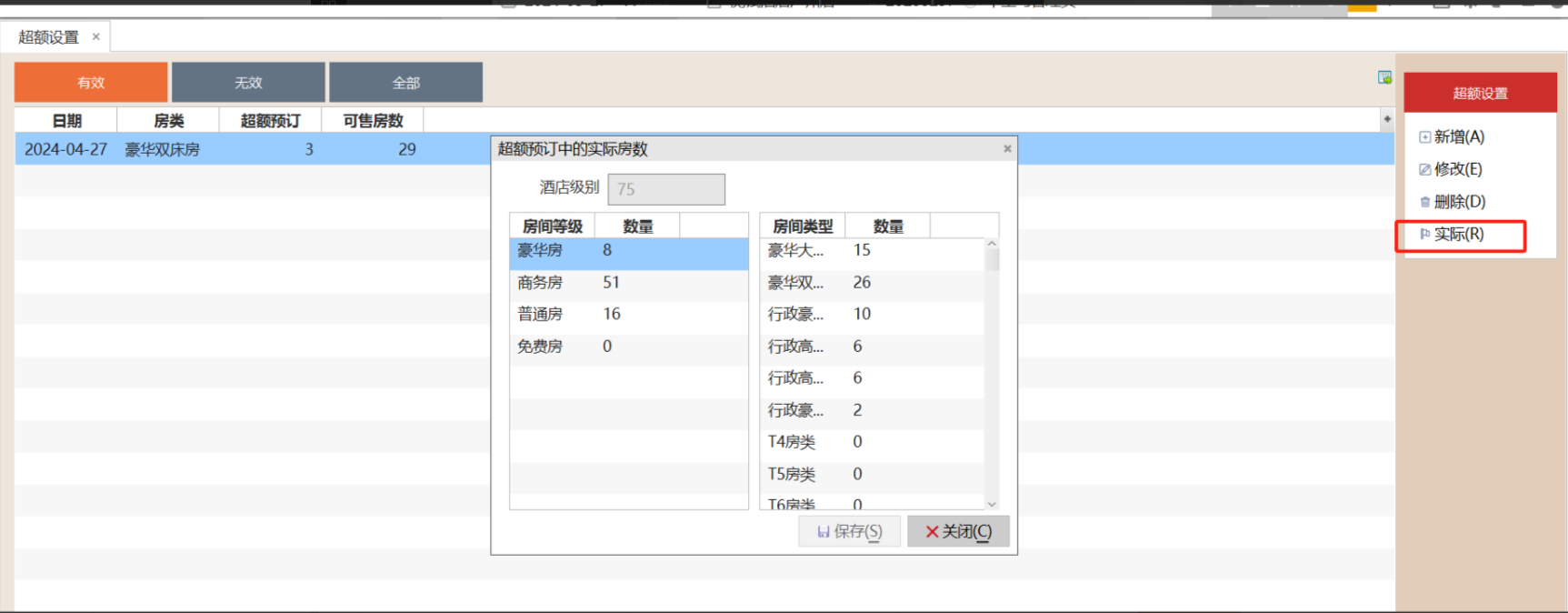 2.4.2 点击"实际",获取当前房类的实际房量