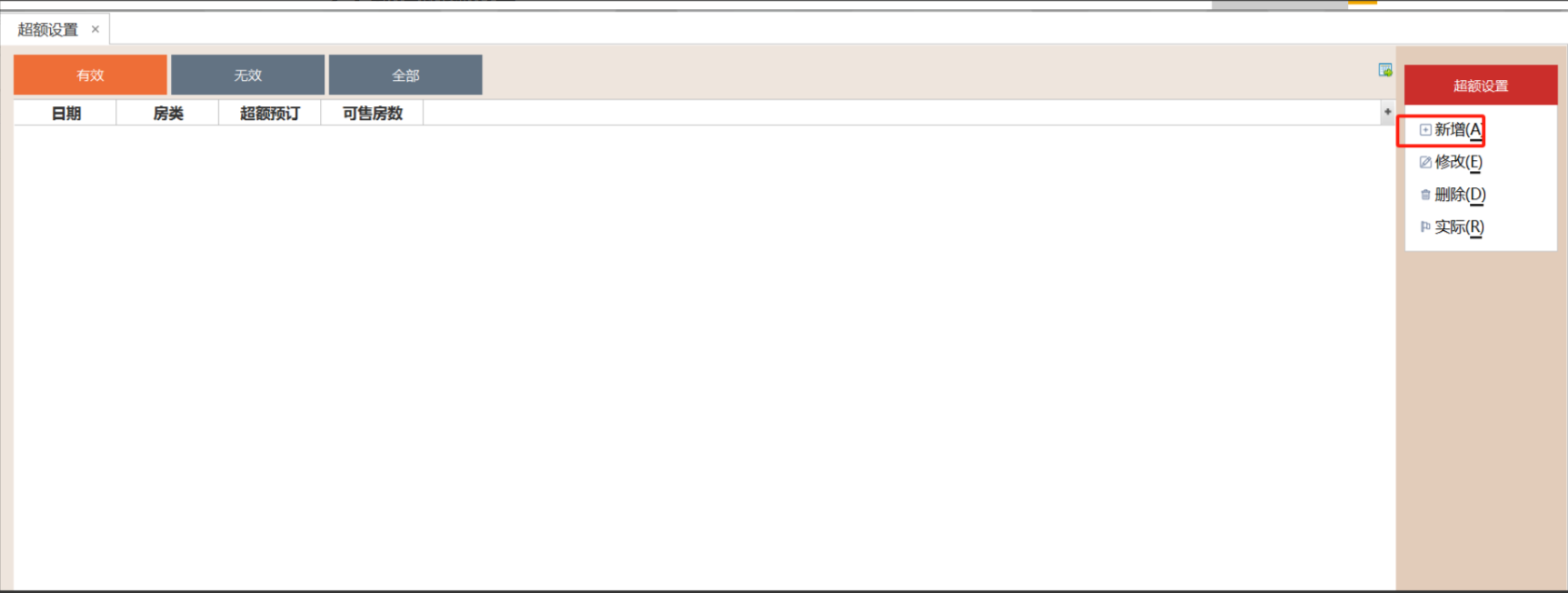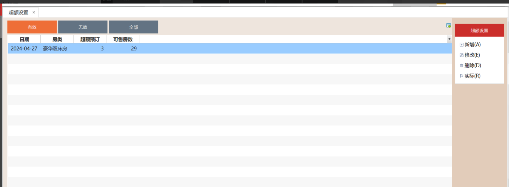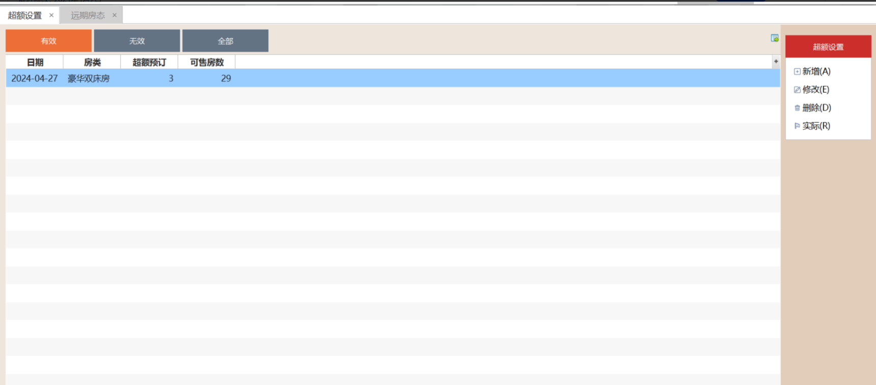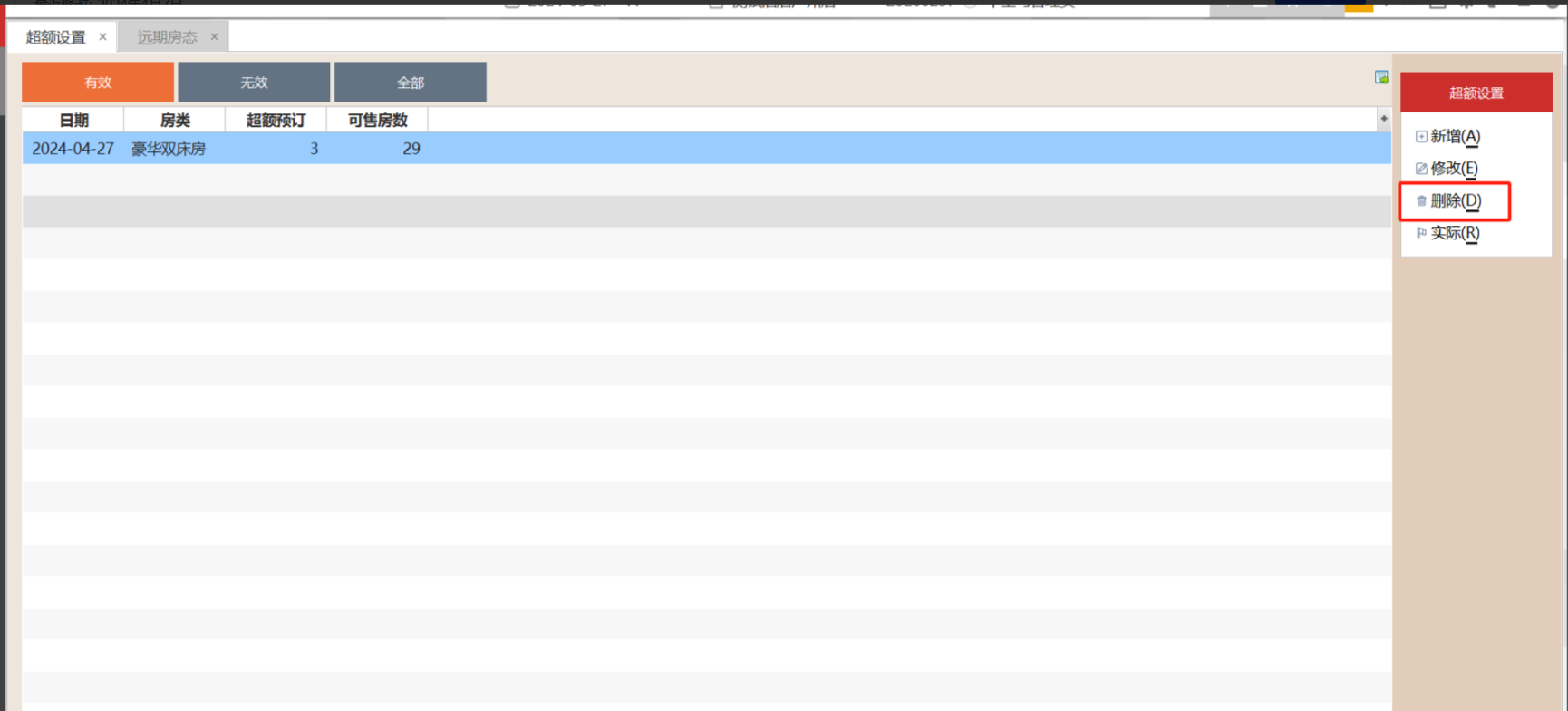 2.3.2 选中超额预订,点击"删除"