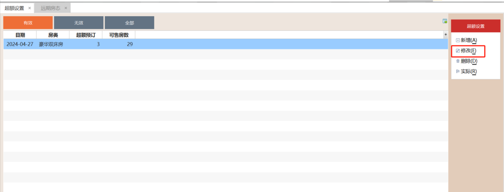 2.2.2 点击"修改" 或双击该超额预订即可进入修改页面