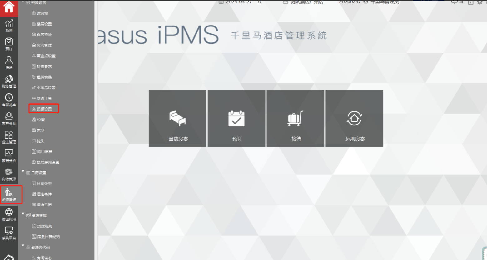 2.1.1 登录iPMS组织单元,资源管理>超额设置