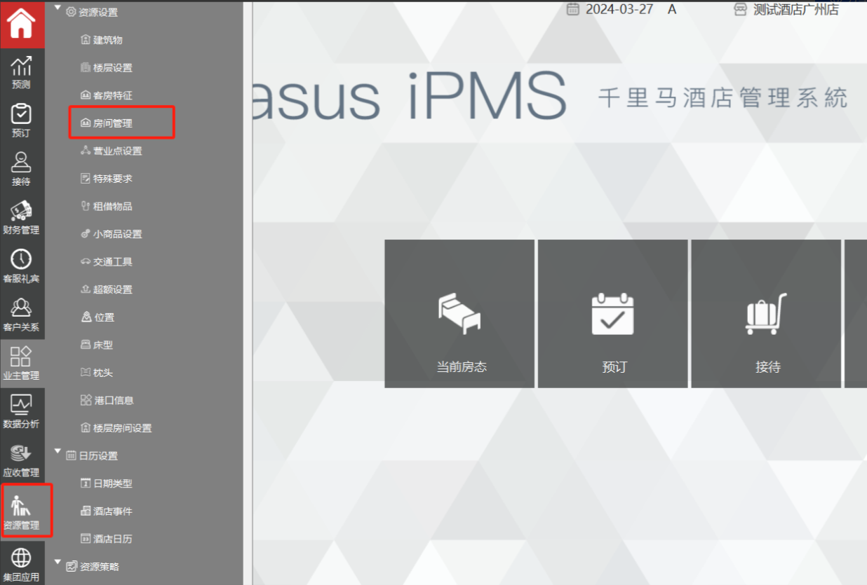 2.1.1 登录iPMS组织单元,资源管理>房间管理