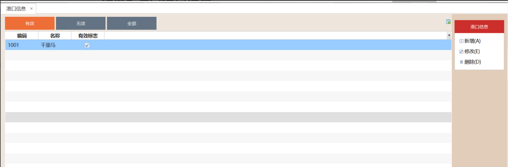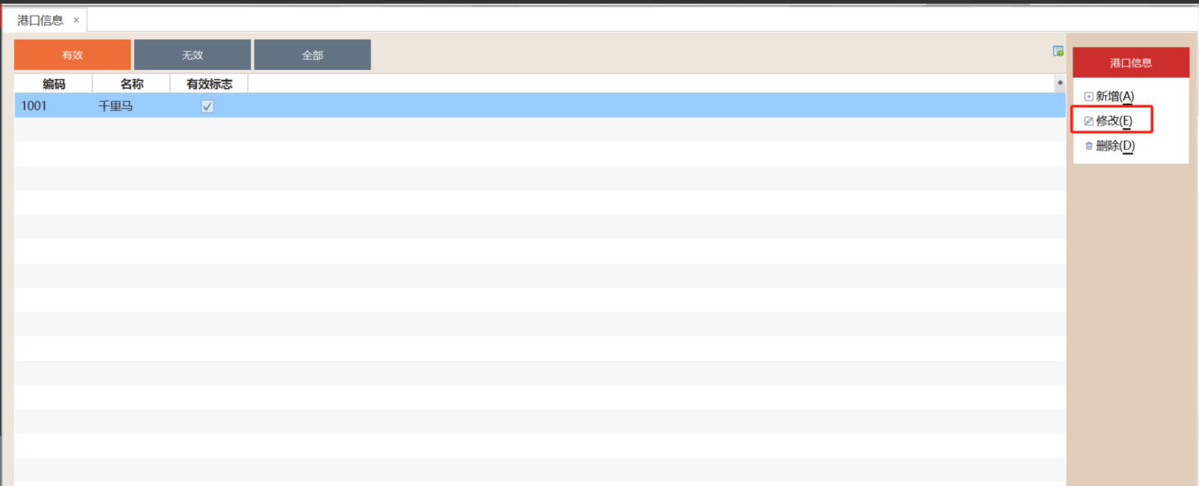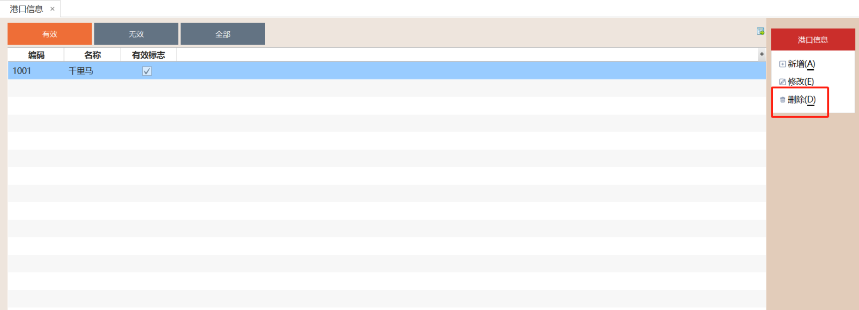 2.3.2 选中港口信息,点击"删除"