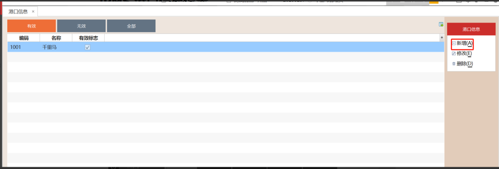2.1.3 填写港口信息的编码、名称,点击"保存"