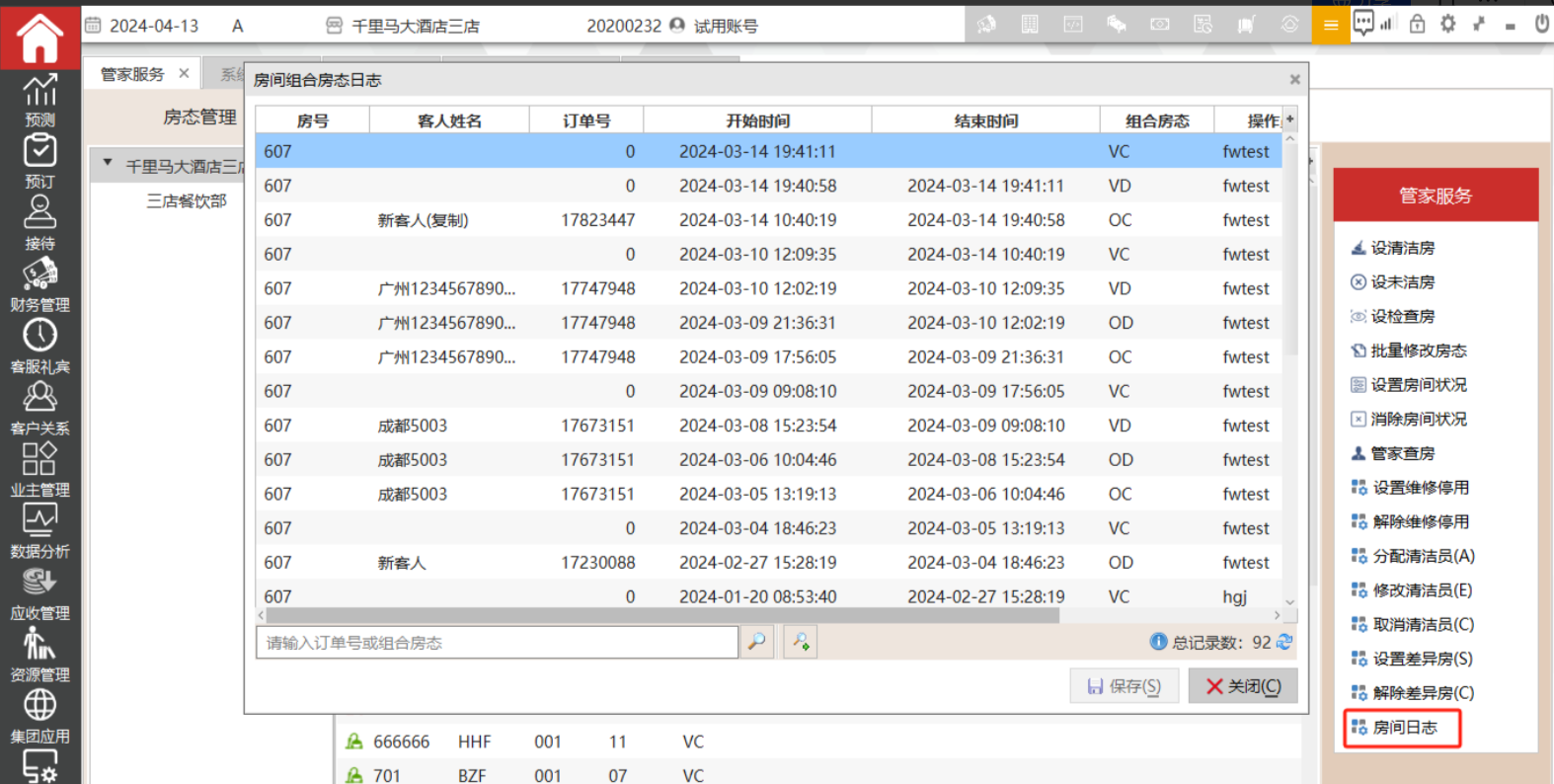 该功能主要是用来查询某个房间的房态变化的情况。