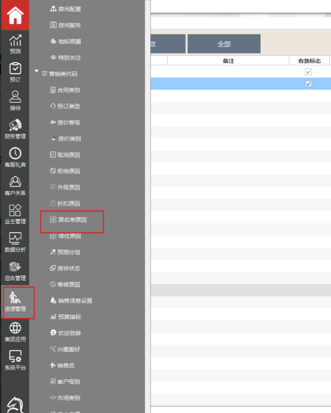 订单界面的客人信息勾选黑名单时,需要选择原因,这里讲解的及这个黑名单的原因选项设置