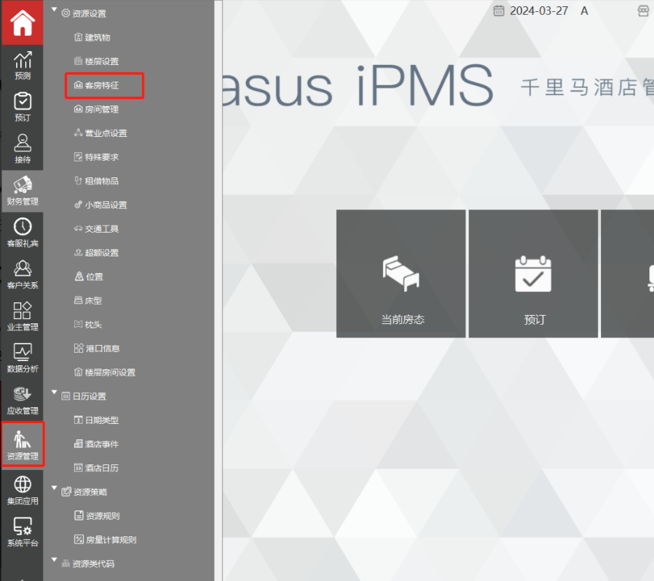 2.1.1 登录iPMS组织单元,资源管理>客房特征
