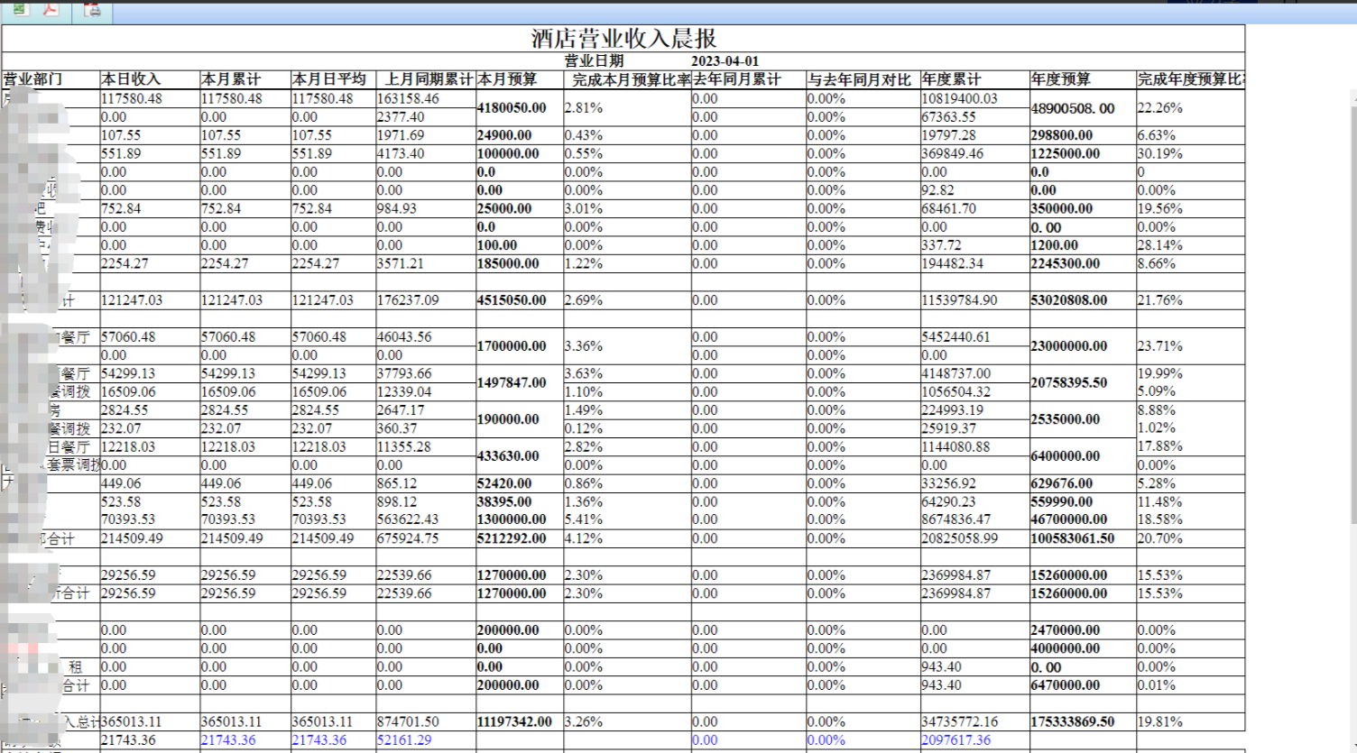 在组织单元中通过“数据分析”--“营业综合报表”功能选项中,打开报表,生成对应日期的数据,如图所示