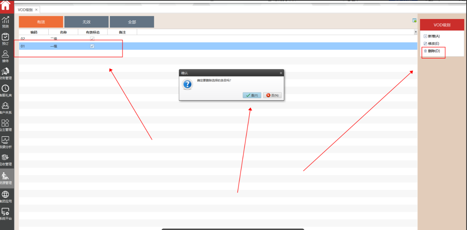 选择需要删除的条目,点击删除即可。这里需要注意,若该条目被使用,将无法删除。可通过有效标志,设置为无效条目。