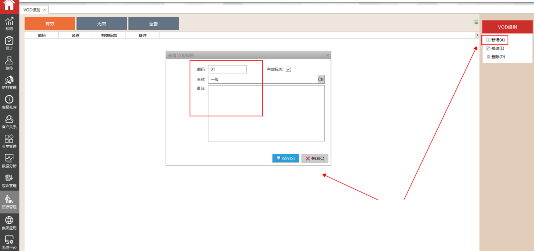 使用有权限的账号登录系统,点击资源管理-VOD级别,点击右上角新增。输入相应内容,点击保存即可。