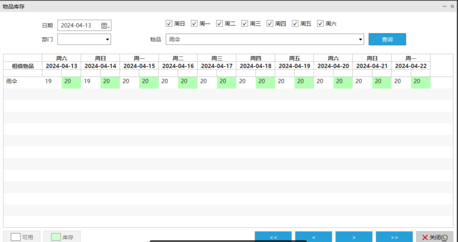用来查询租借物品在对应日期的库存数。