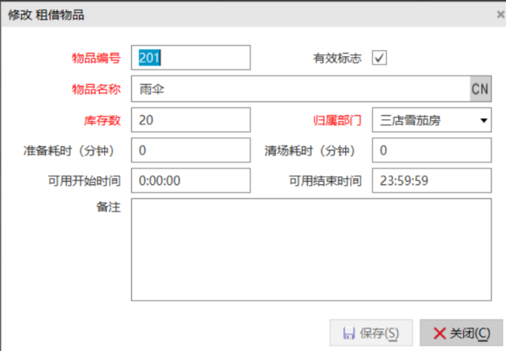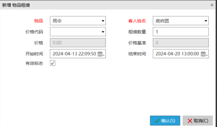 1.在资源管理中定义租借物品及库存数。如果租借物品需要收费,可以在价格设置中设置对应的收费标准。目前支持一次性收费。