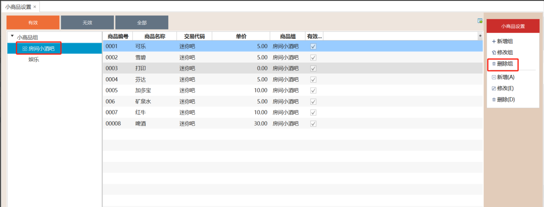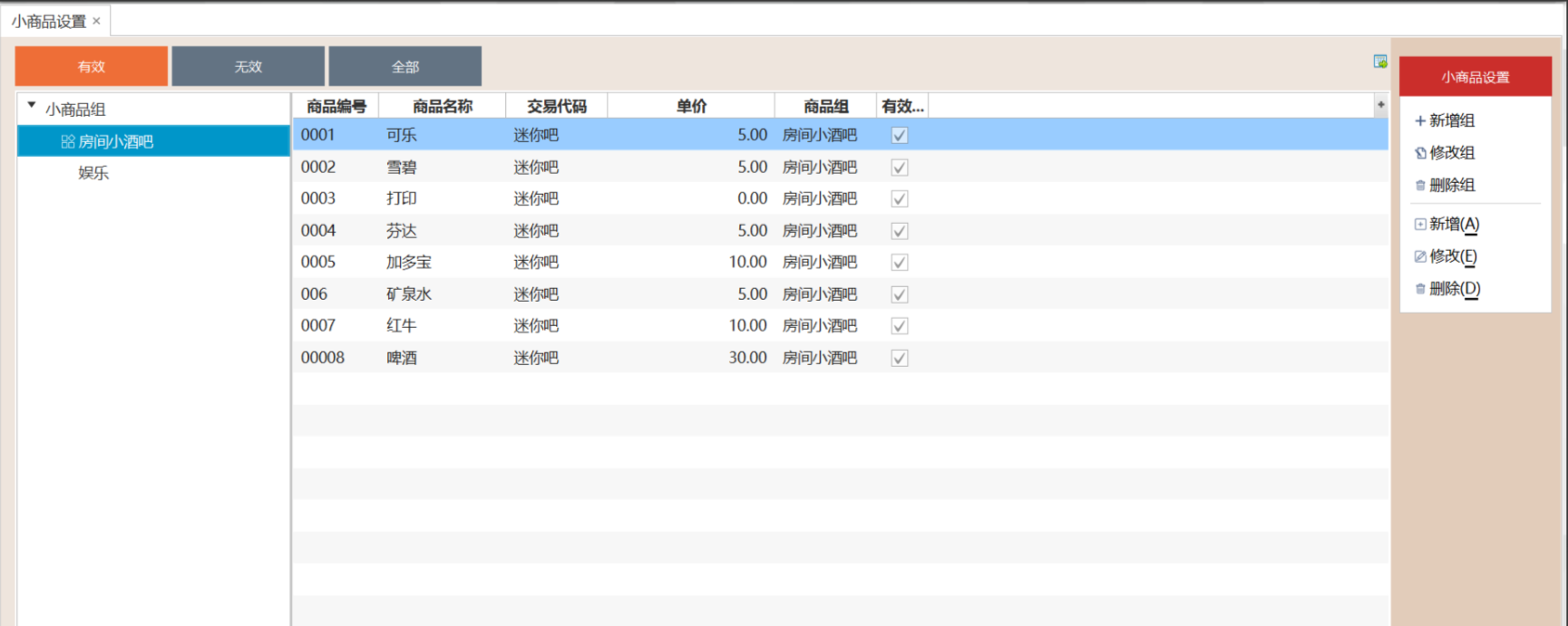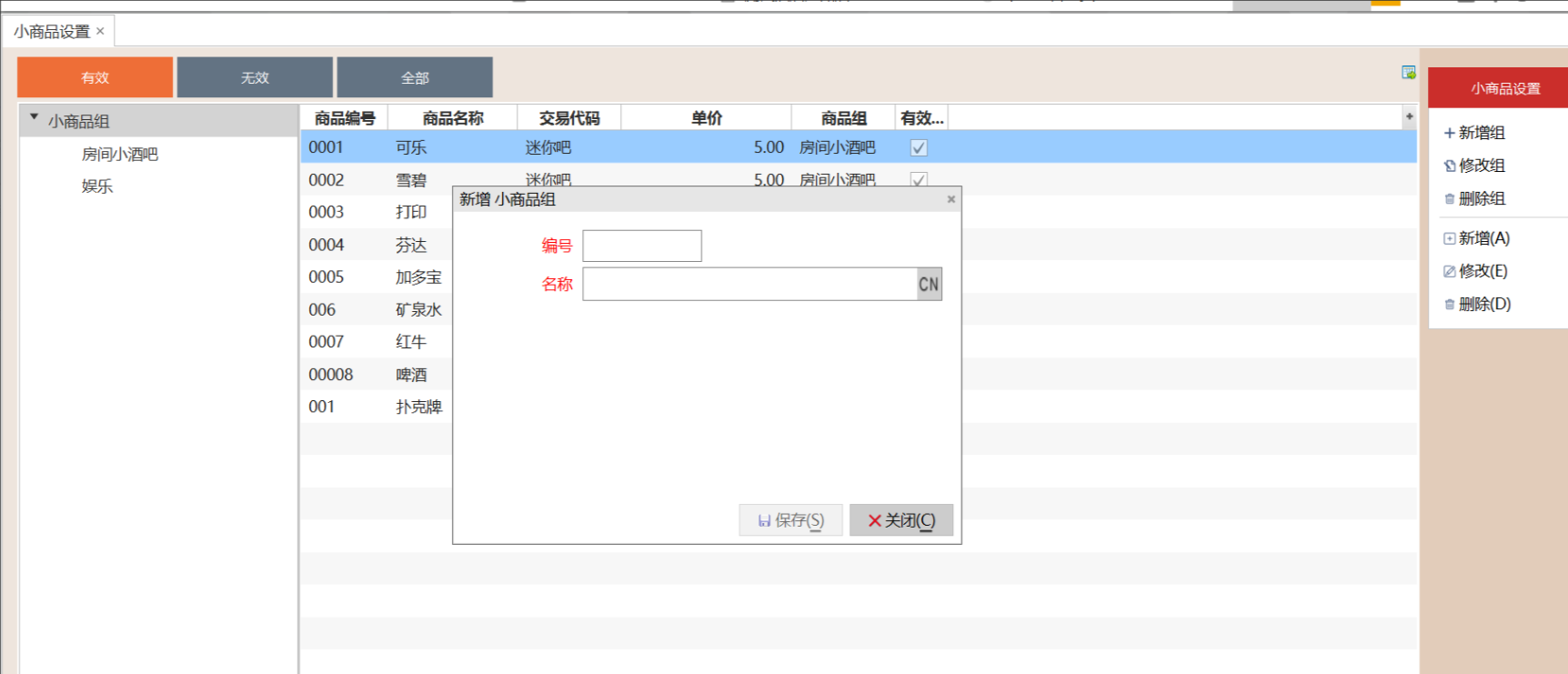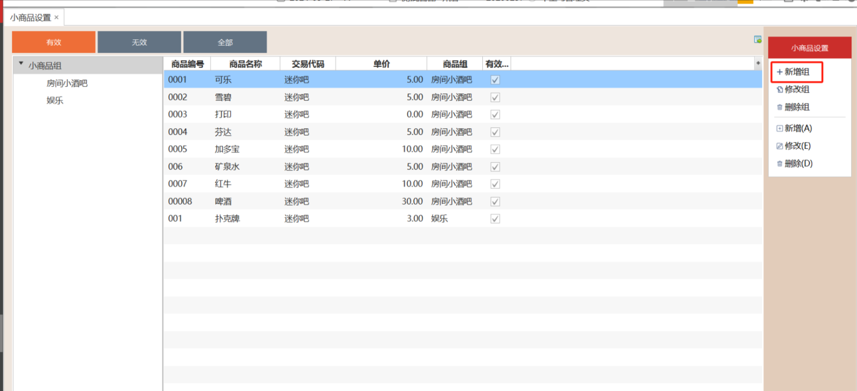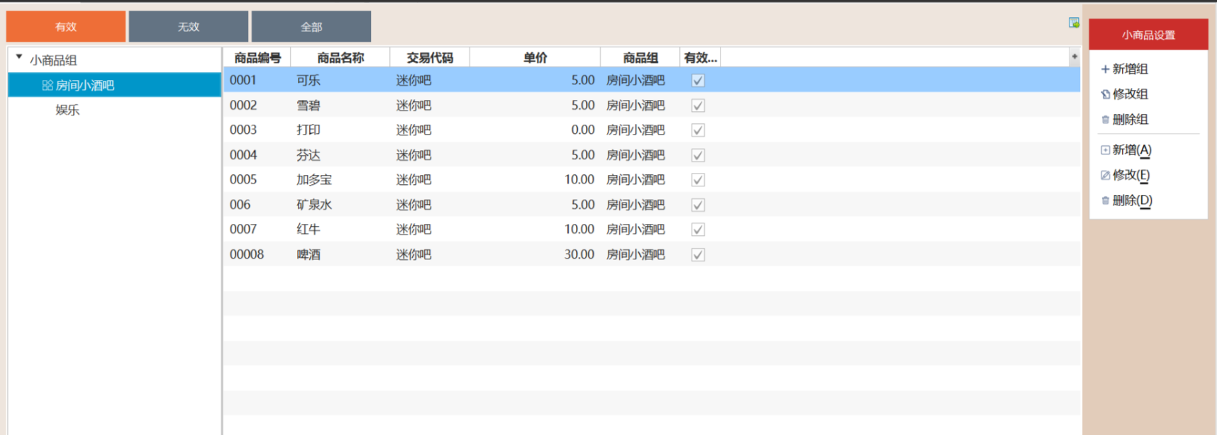 小商品组的编码和名称;比如香烟;酒水,易耗品等一类商品的名称