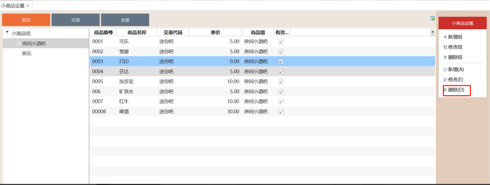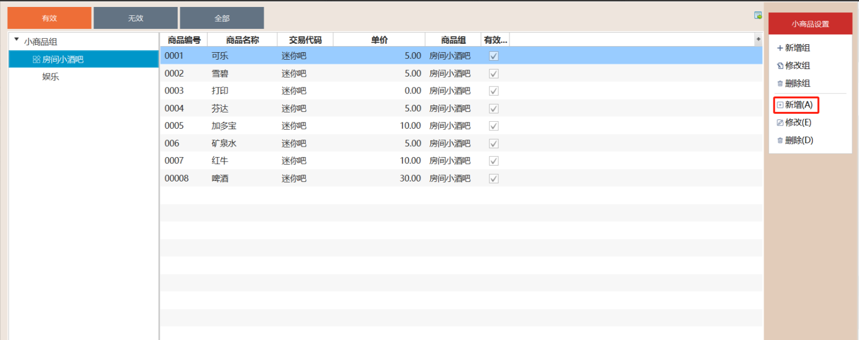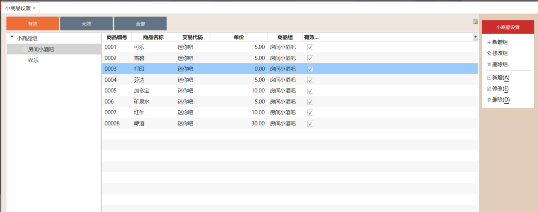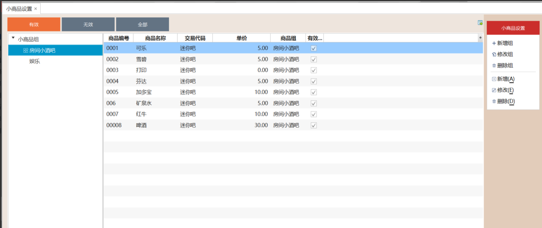 小商品组的编码和名称;比如香烟;酒水,易耗品等一类商品的名称