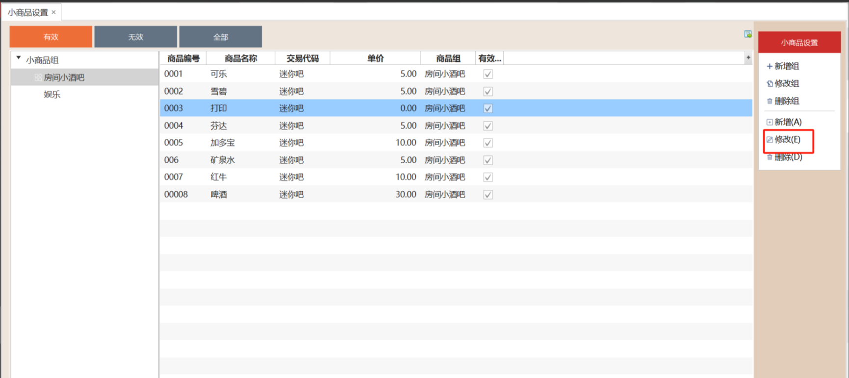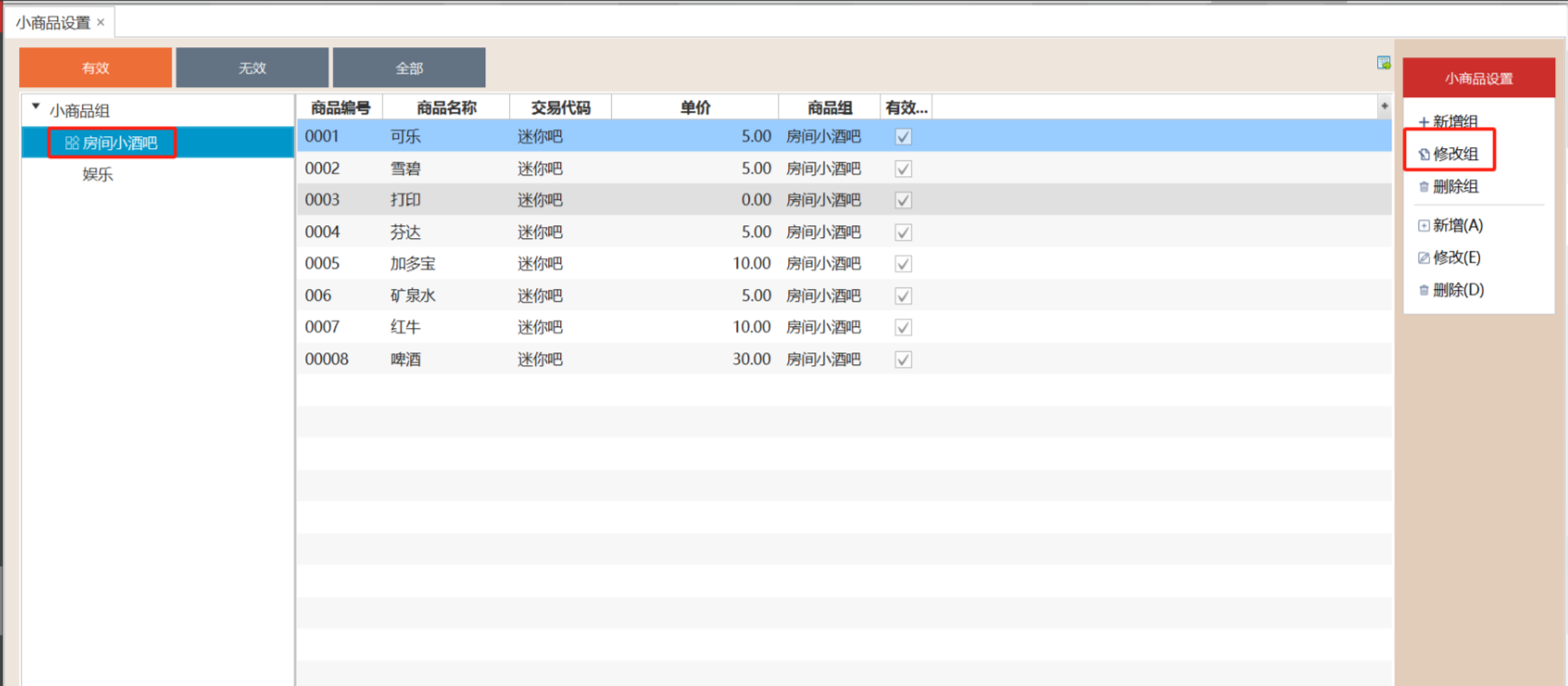 2.2.2 选中小商品的组别,点击"修改" 即可进入修改页面
