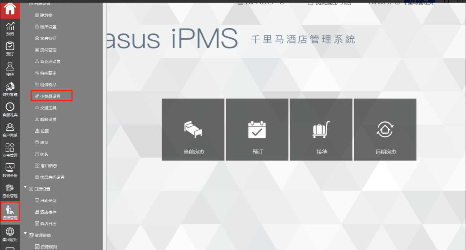 2.1.1 登录iPMS组织单元,资源管理>小商品设置