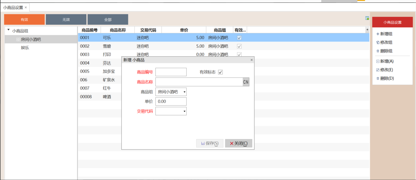 2.4.3 填写小商品的编码、名称,单价,交易代码、点击"保存"