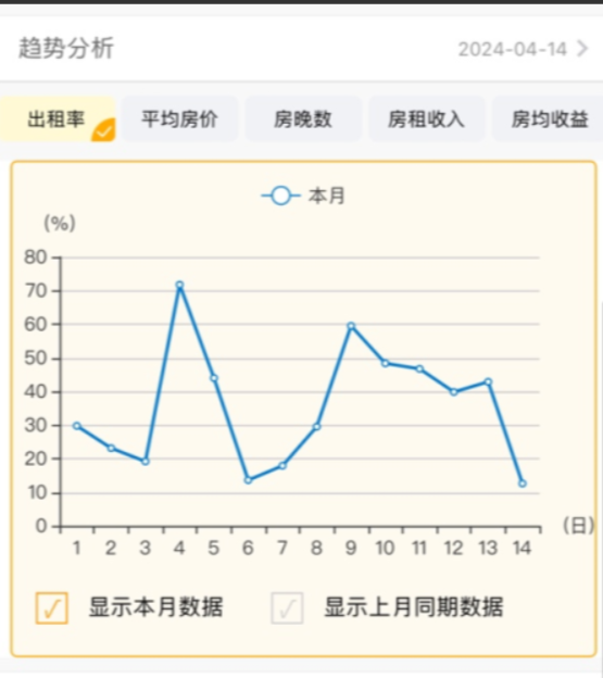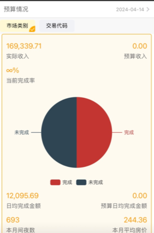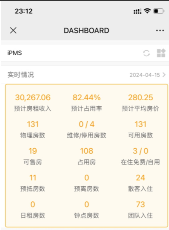 一、进入手机工作圈后打开IPMS中的收银管理,查看DASHBOARD 二、显示酒店实时情况 二、趋势分析 三、入住情况 四、预算情况