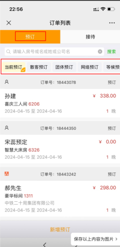 一、进入手机工作圈后打开订单管理 二、选择预定试图后即可查看对应的预定客单