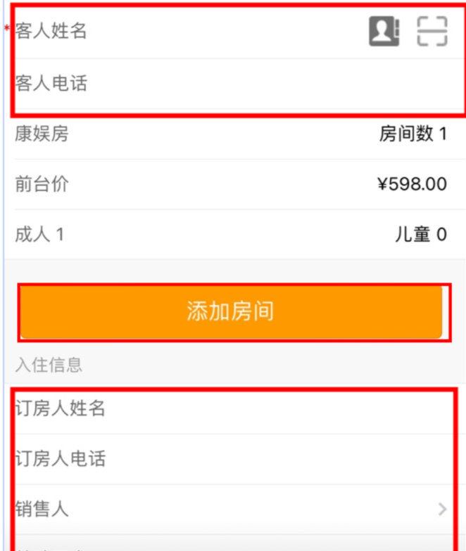 2、填写房号、客人信息和订房人信息后保存即可