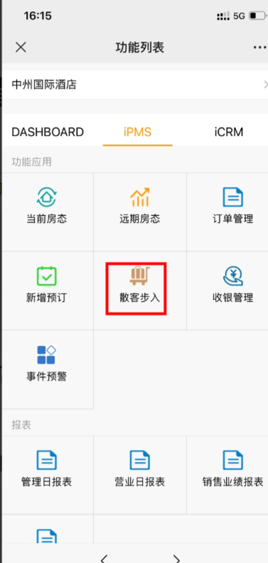 一、进入手机工作圈后打开IPMS中的散客步入