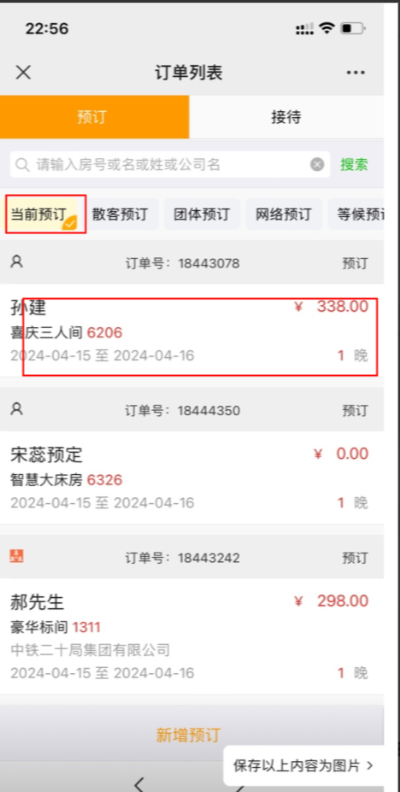 二、选择要入住的订单