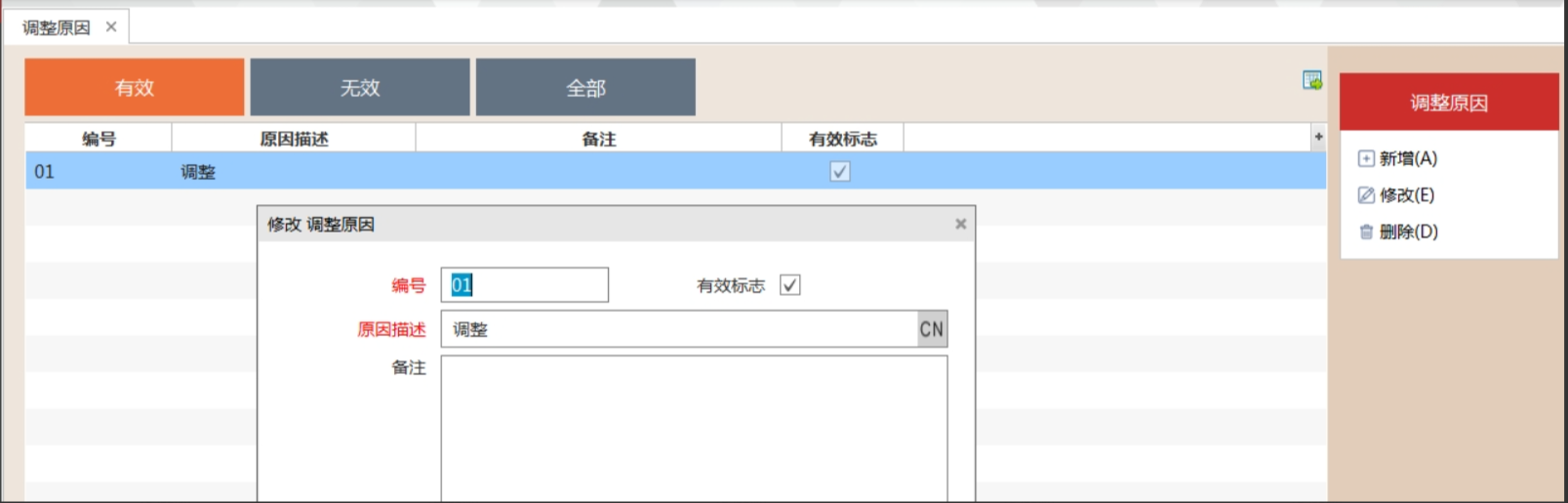 登录ipms组织单元-资源管理 -财务类代码-调整原因-修改