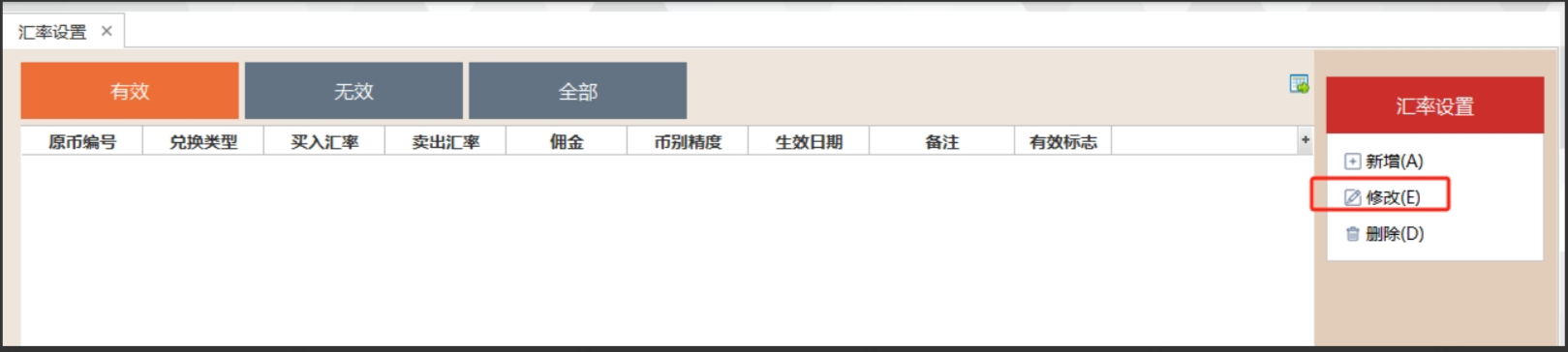 登录ipms组织单元-资源管理 -财务类代码-汇率设置-修改