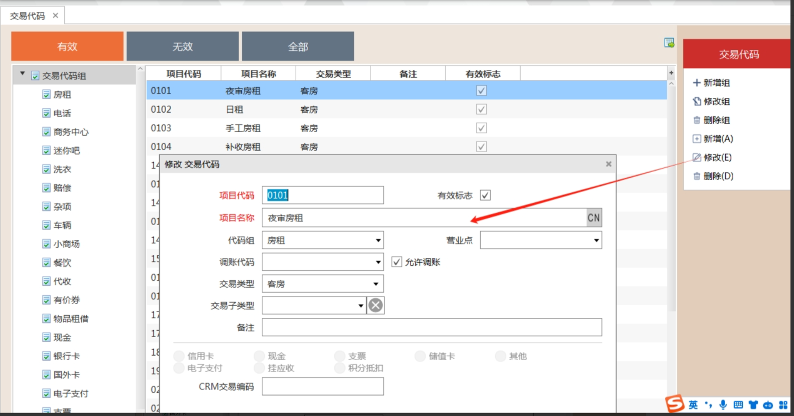 登录ipms组织单元-资源管理 -交易代码-删除-保存 已使用过的交易代码把有效标志勾去掉