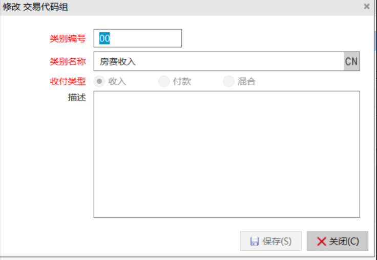 收付类型:为交易代码组选择一种类型。分为:收入、付款、混合。