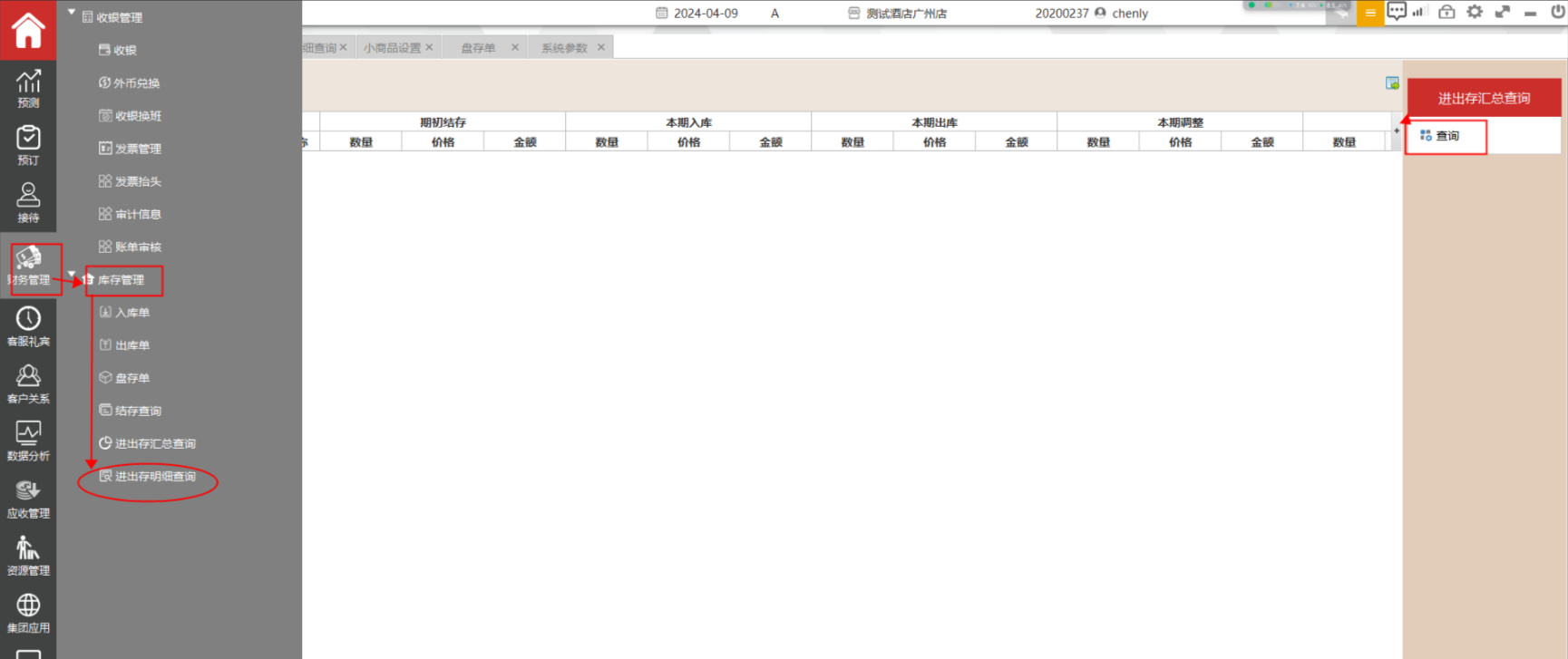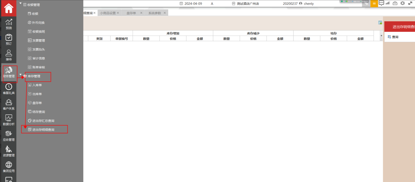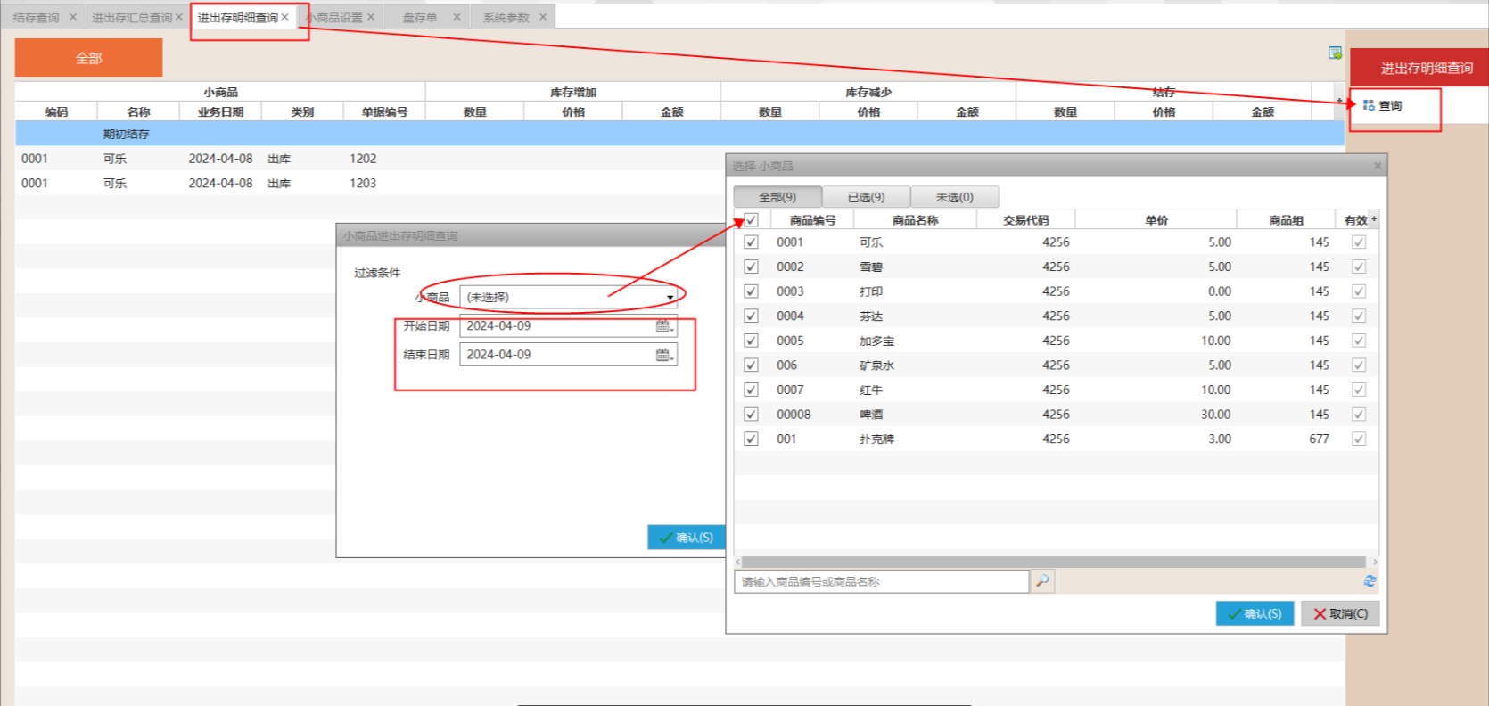 出存明细查询用于查询某一个商品或全部商品在一段时间内的进出存明细情况。
