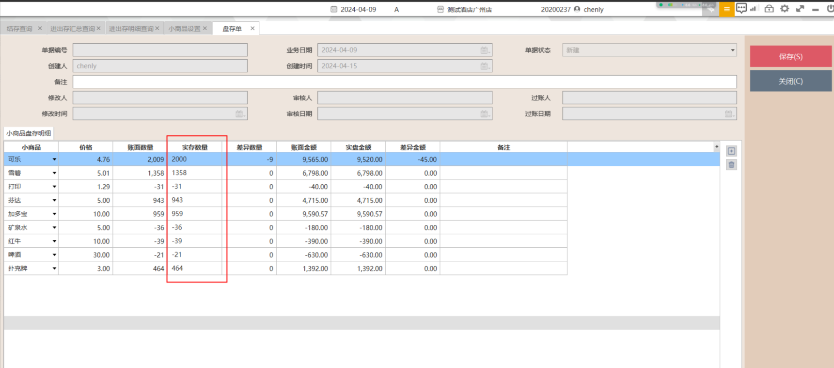 基于上,盘存表只需要盘存数量即可,每一个单据都将实时影响结存情况。
